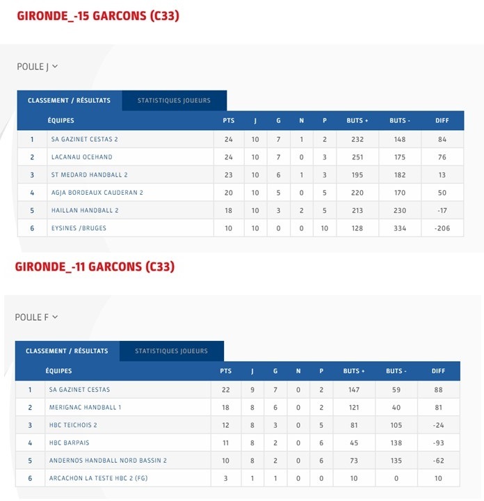 Nos -11 G et -15 G2 finissent 1ers de leur poule...